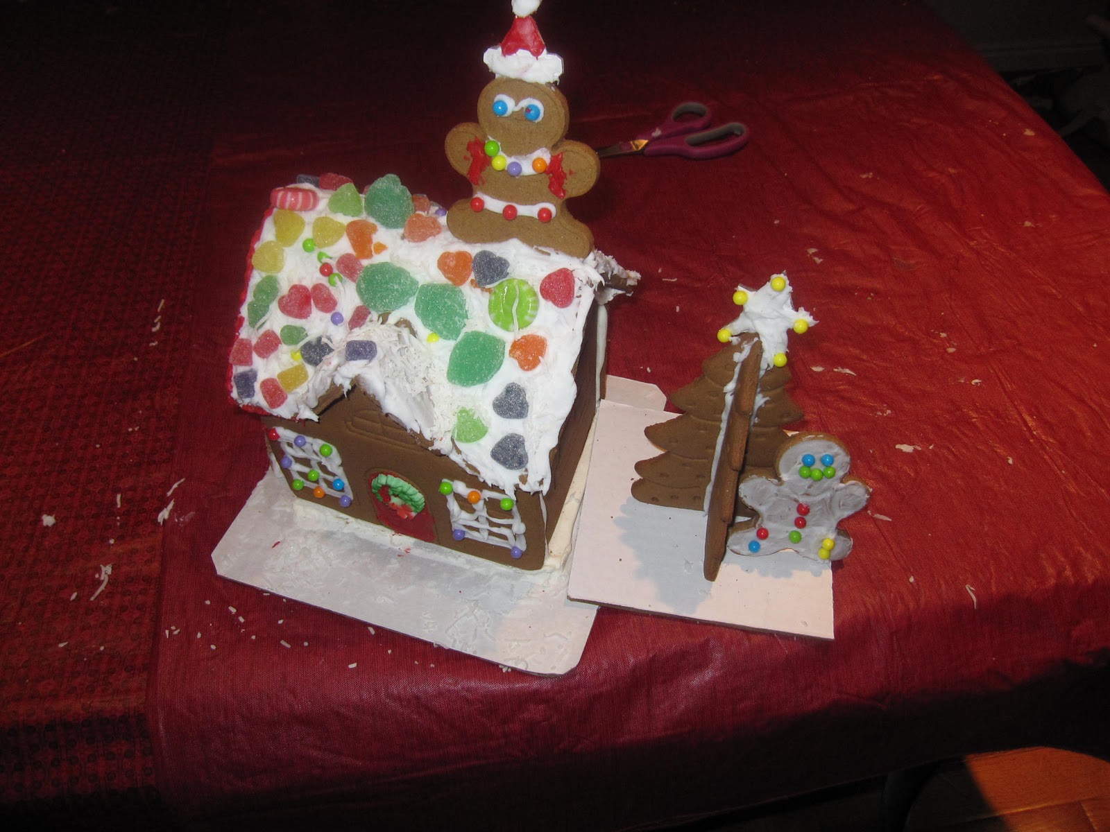 With a Gingerbread Santa! Christopher put the Candy on the roof!
